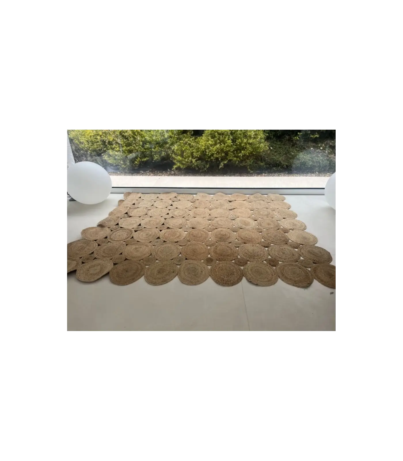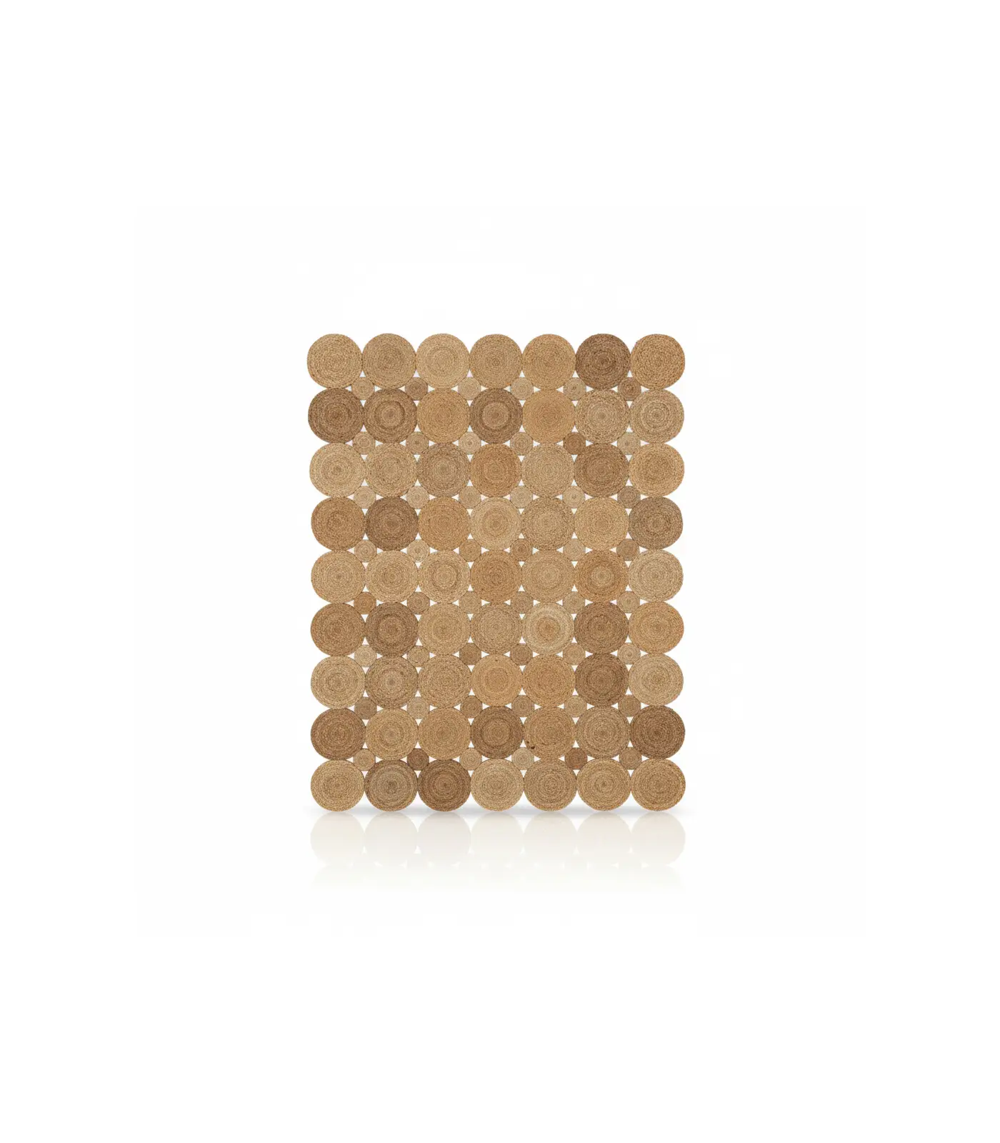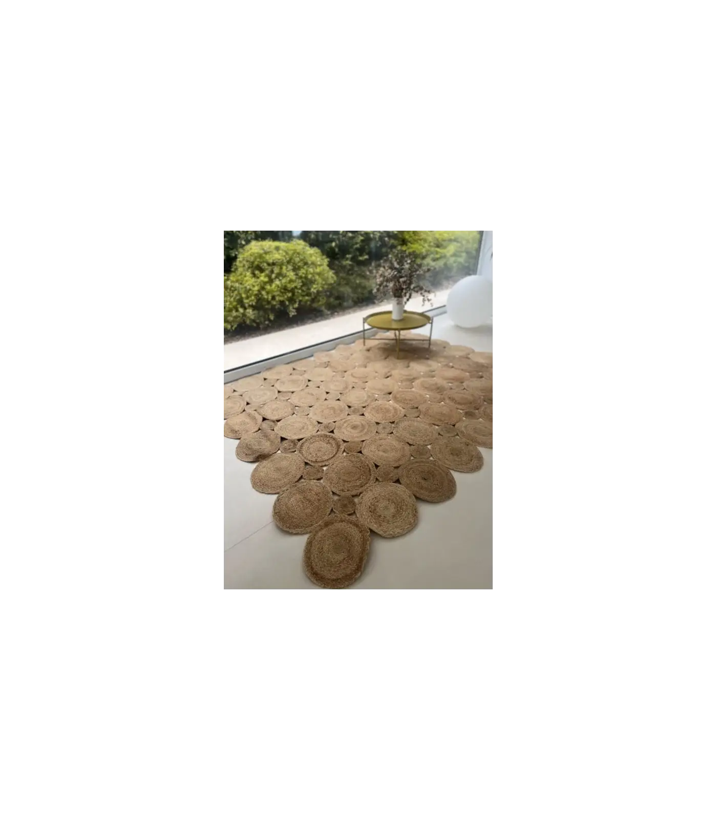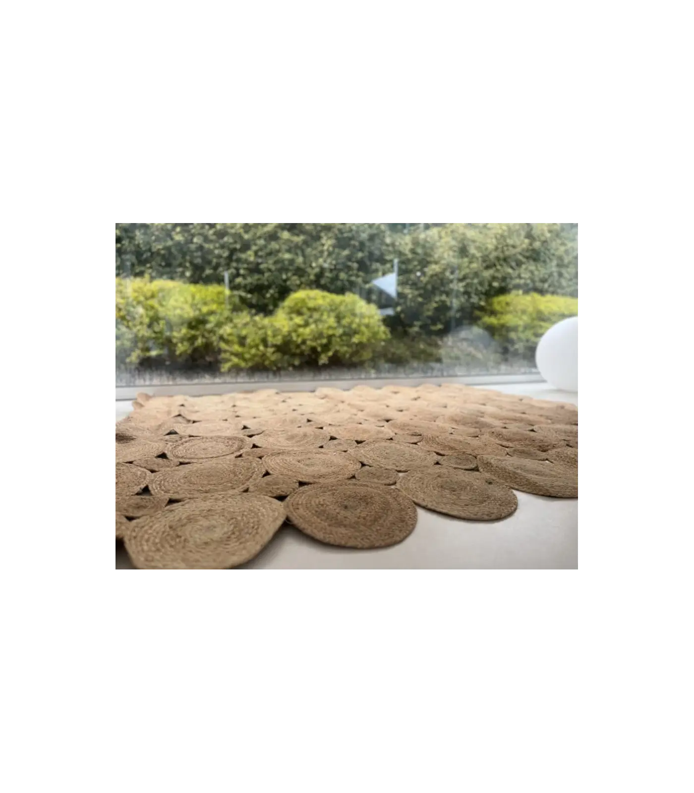 100 % yute natural. El yute es una fibra vegetal resistente y ecológica, con un tacto suave y un brillo natural que aporta luz a cualquier estancia. Es una de las fibras más utilizadas en decoración por su equilibrio entre belleza y durabilidad.