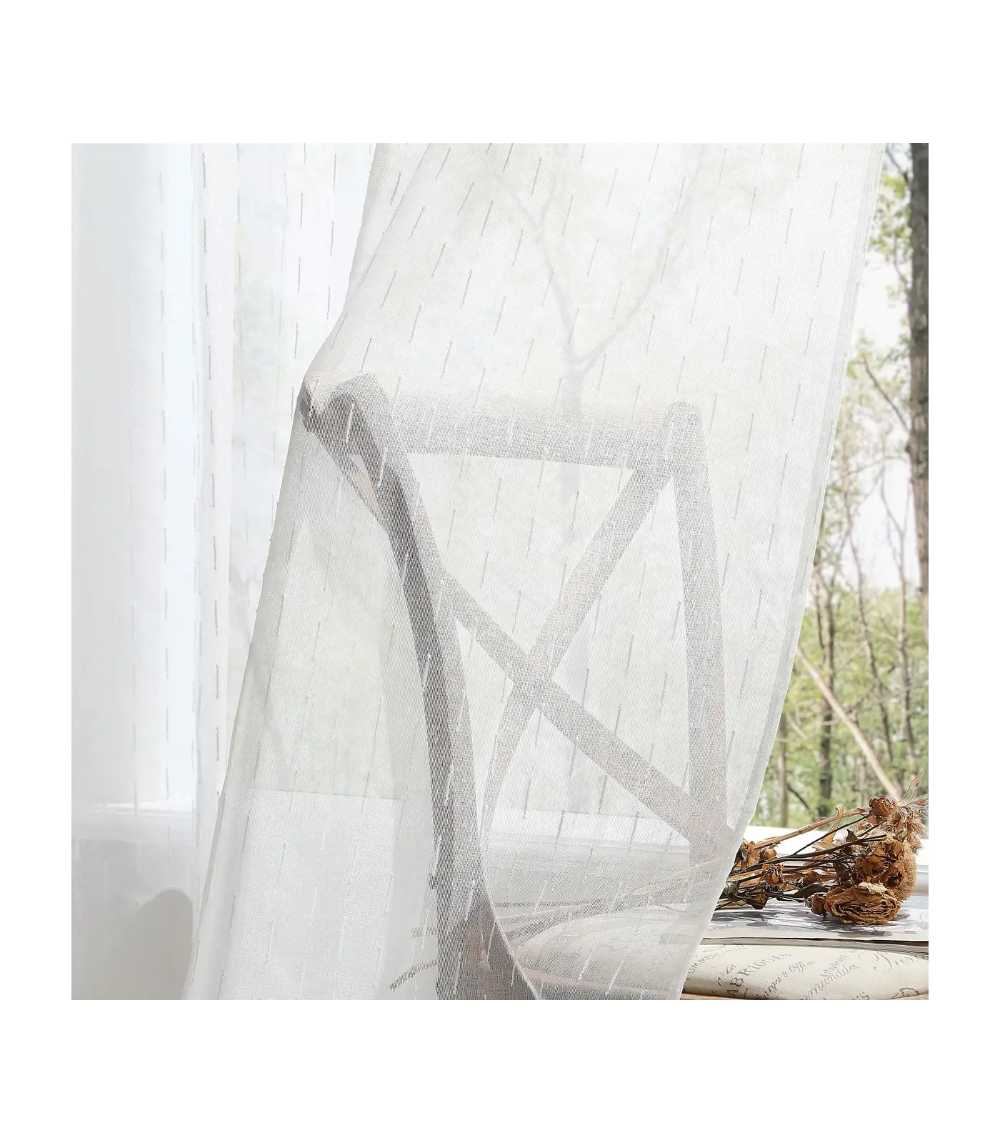 - Visillo confeccionado con ollaos de estilo rústico.