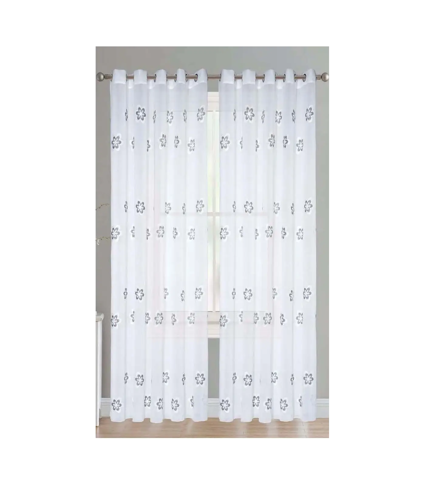 - Cortina confeccionada con ollaos en un tejido de transparencia media.