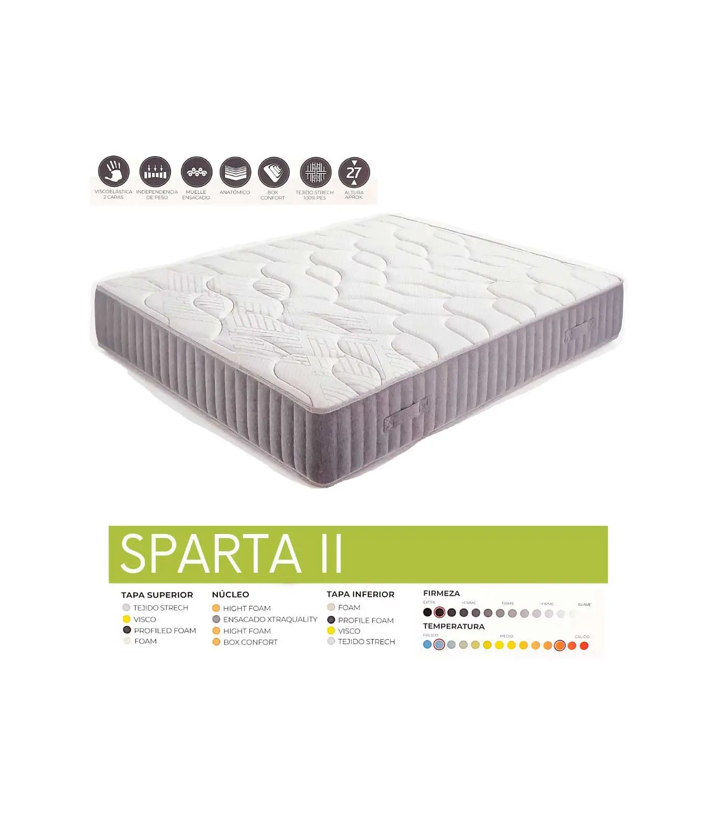 - Muelle ensacado Xtra Quality de firmeza alta sin renunciar a una excelente adaptación.