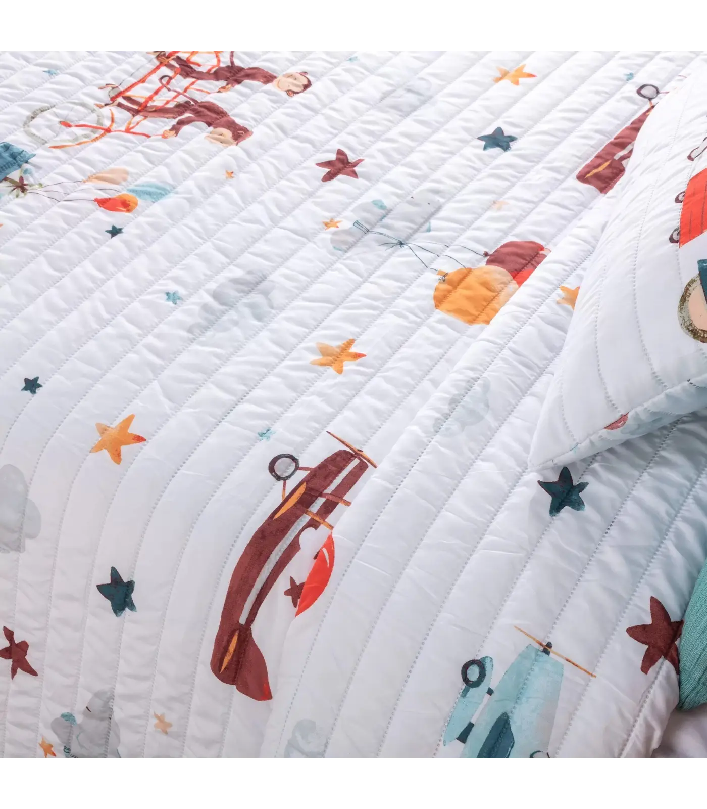 • Confeccionada con cinta perimetral a tono con la colcha y además las esquinas inferiores están redondeadas.
