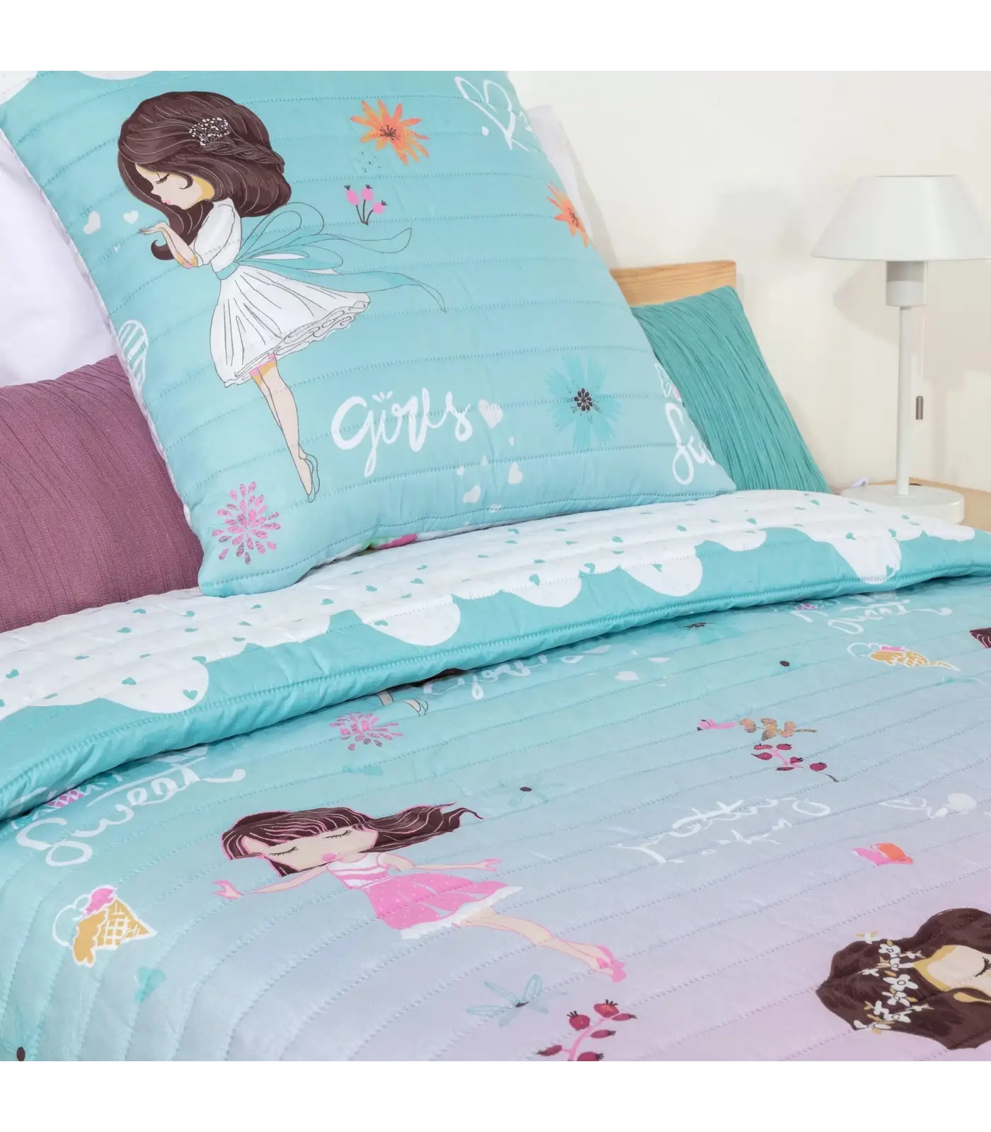 - Confeccionada con cinta perimetral a tono con la colcha y además las esquinas inferiores están redondeadas.