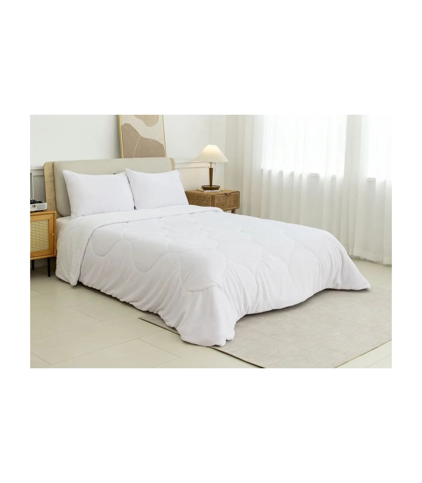 - Cama 150 cm: 250x260 cm. Incluye 2 fundas de cojín de 50x70 cm.