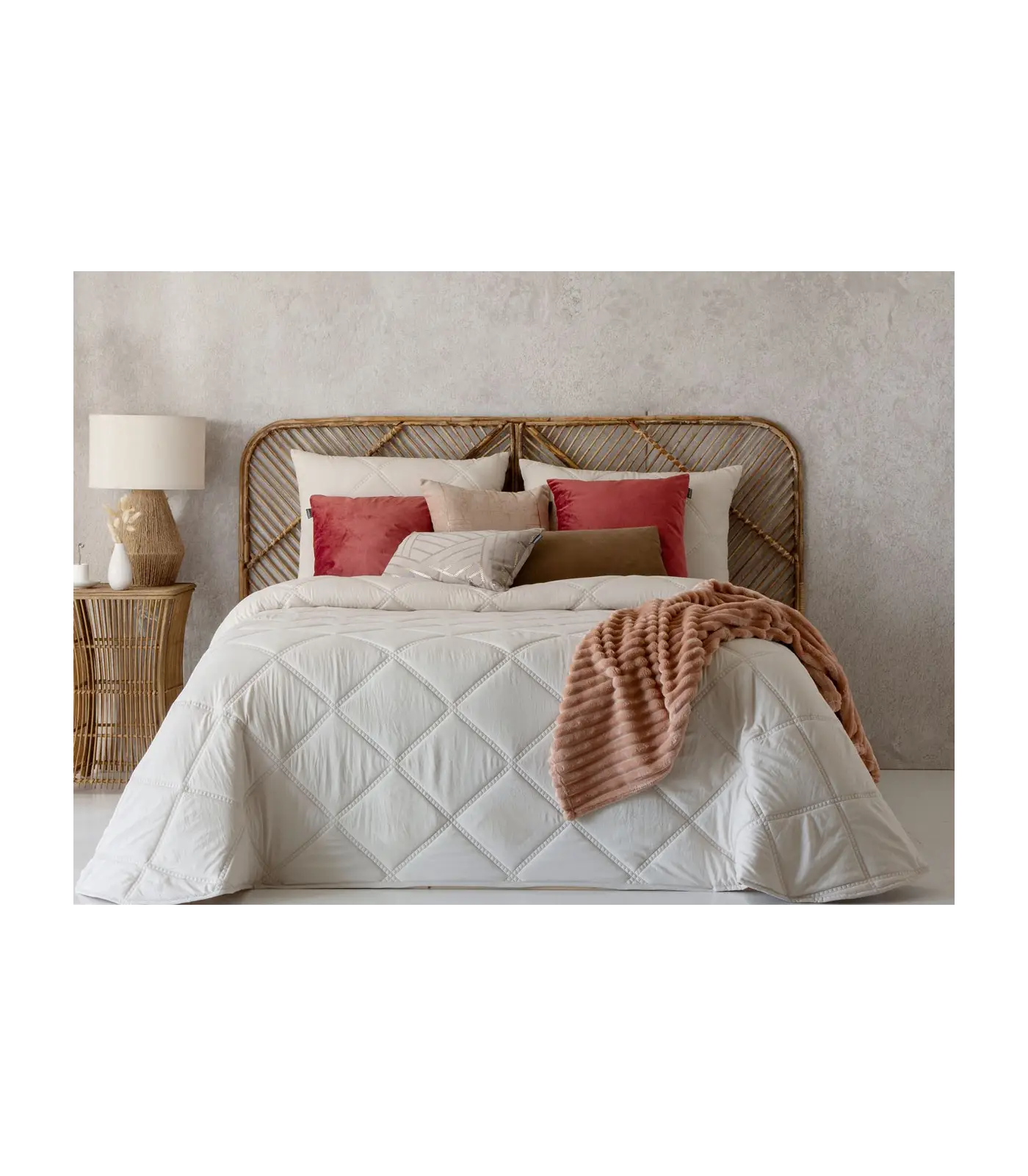El edredón sedistingue por su original cosido romboidal.