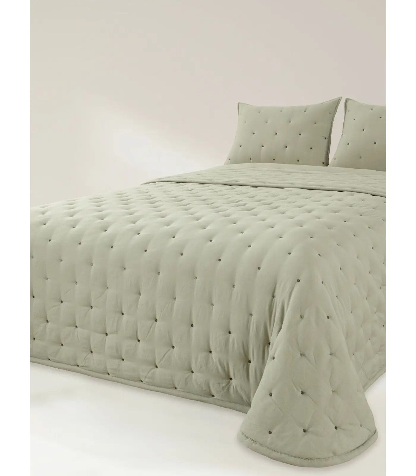 Colcha bouti ligeramente guateada. Soft Touch. Tacto extra suave. Relleno fino de 120 g. Abriga sin que la prenda pese. Perfecta para los meses de primavera-verano. 100% poliéster con acabado stonewash.