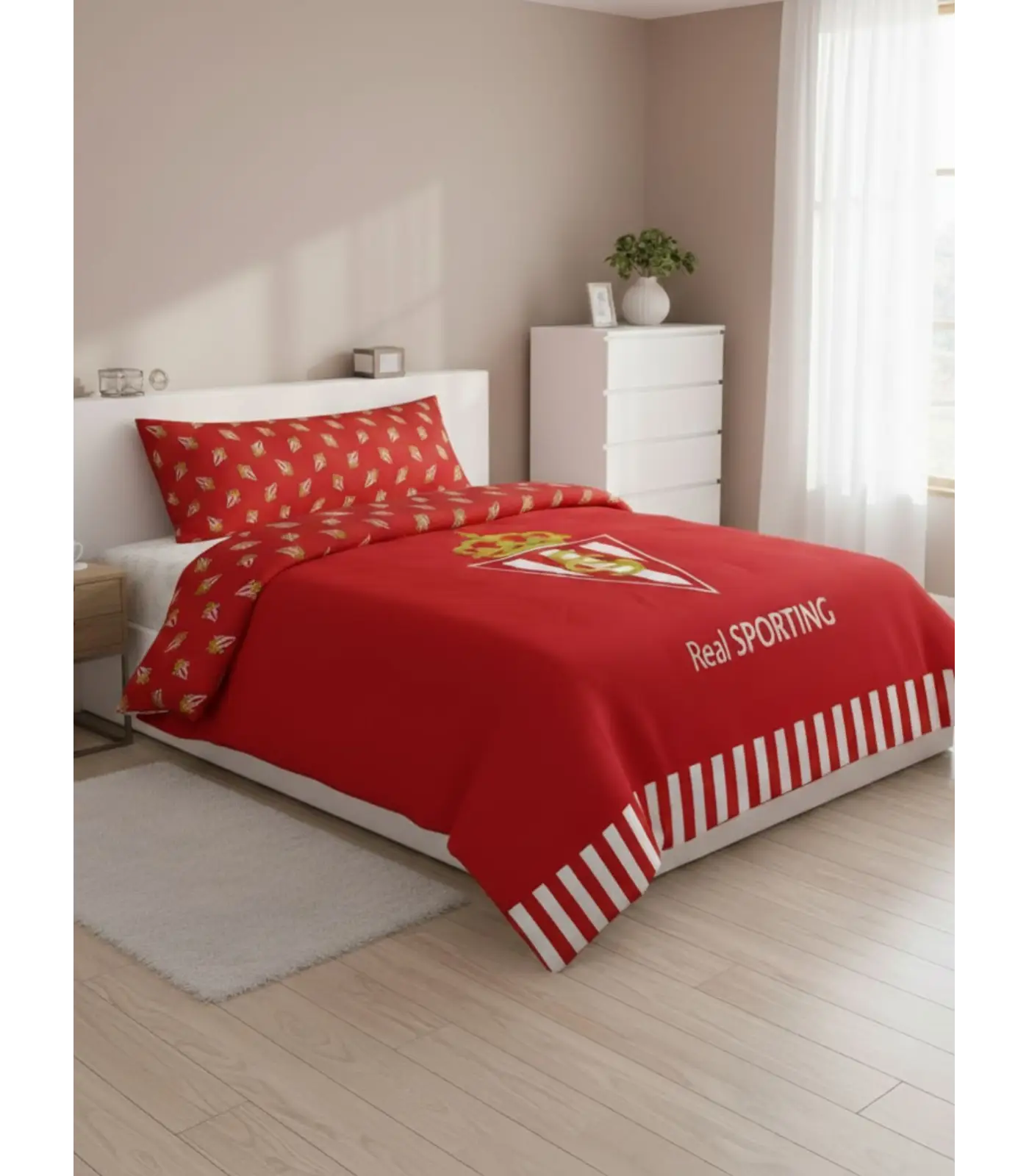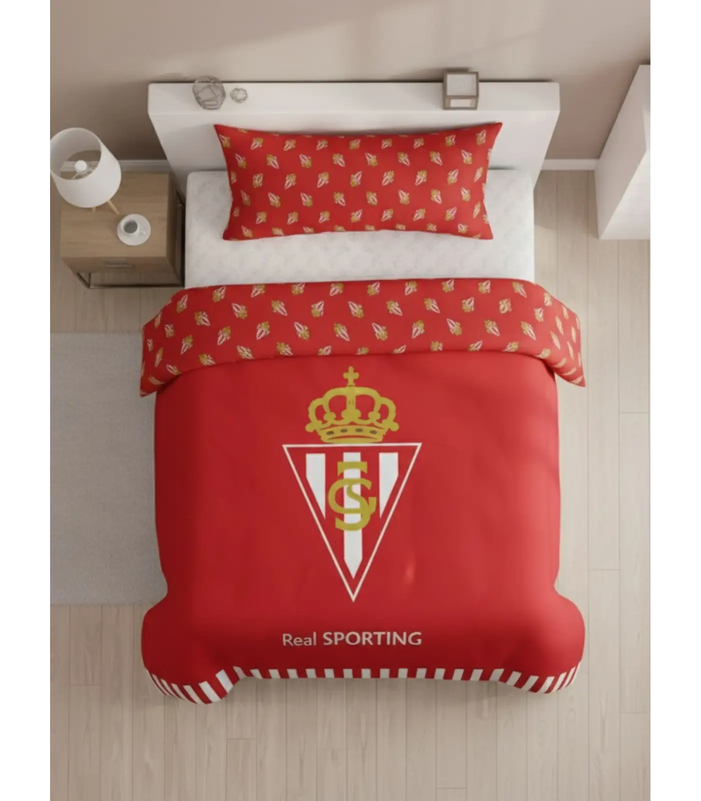 - Funda nórdica de dos piezas (funda nórdica y funda de almohada) del Real Sporting de Gijón.