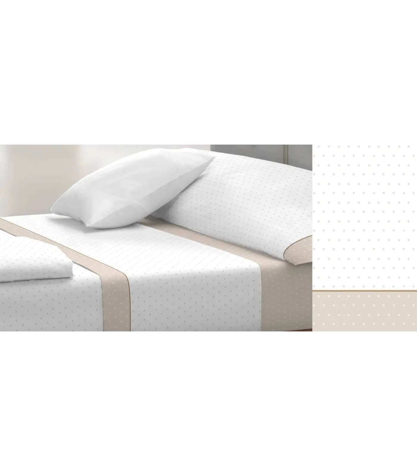 - Tira aplicada con vivo en encimeras y fundas de almohada.