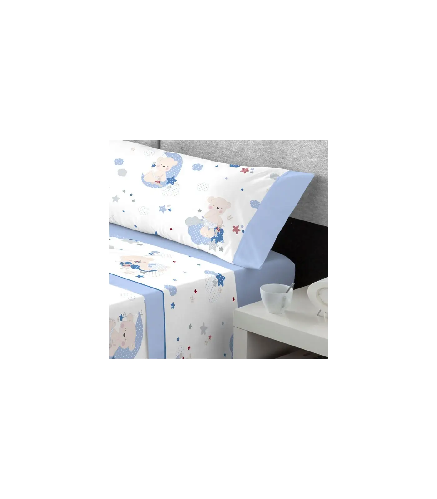 - Cama de 90 cm: Encimera 160x270 cm + Bajera 90x200 + 30 cm + Funda de almohada 45x115 cm.