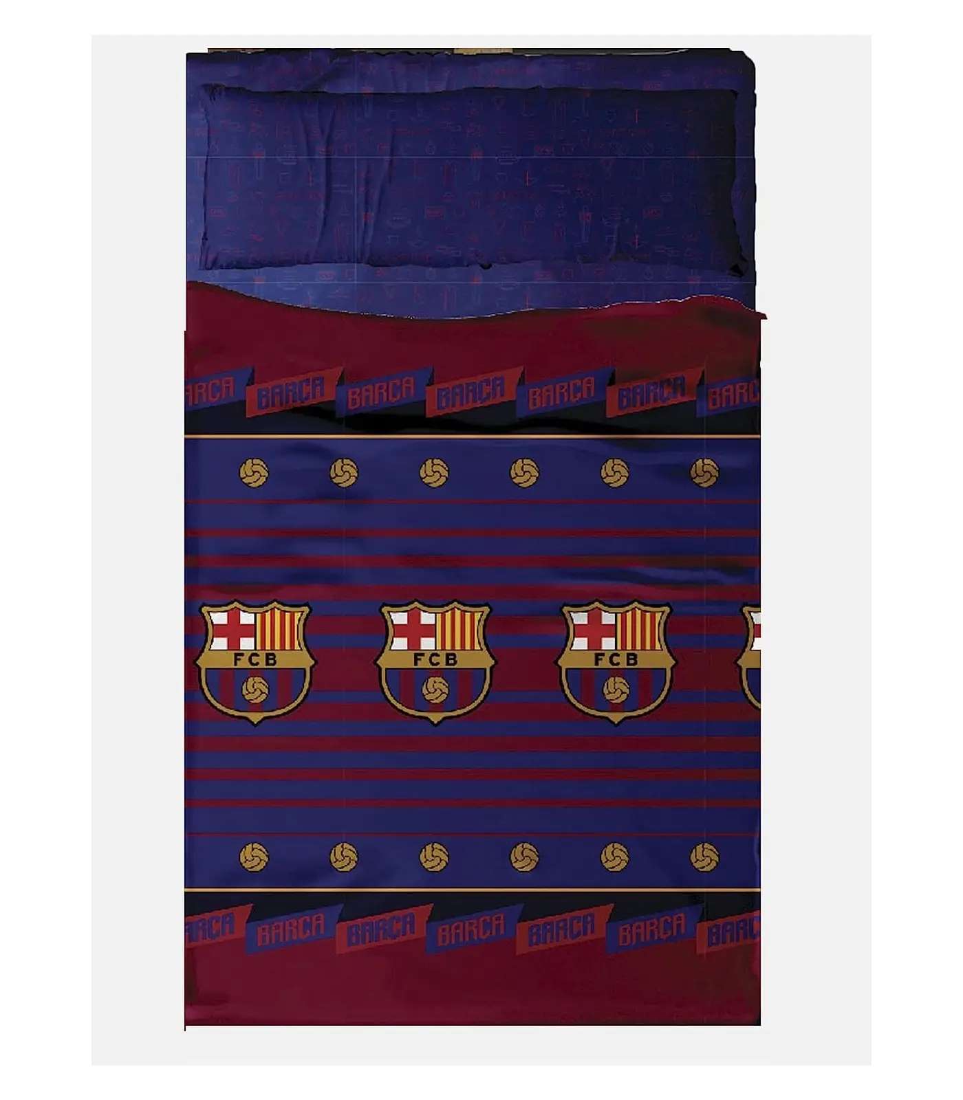 • Juego de sábanas de tres piezas del FC Barcelona.