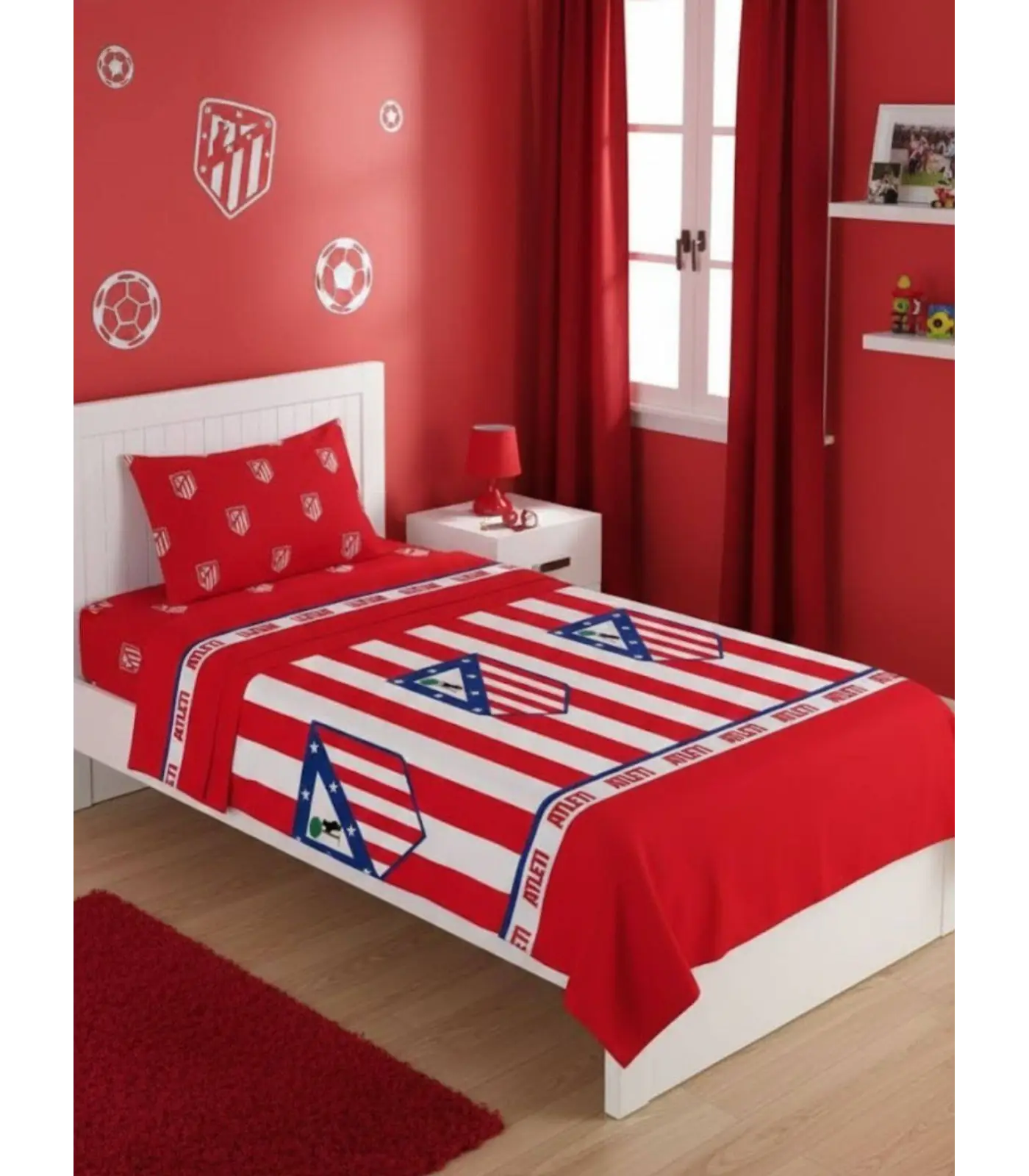 - Juego de sábanas de tres piezas del Atlético de Madrid.